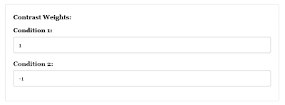 Technical Note: The app assumes that the sum of squares of the Error Variance can be decomposed in (k – 1) equal parts, where k is the number of conditions. I will change this restriction in a future version of the app. For a custom contrast it is assumed that the contrast is part of an orthogonal set.